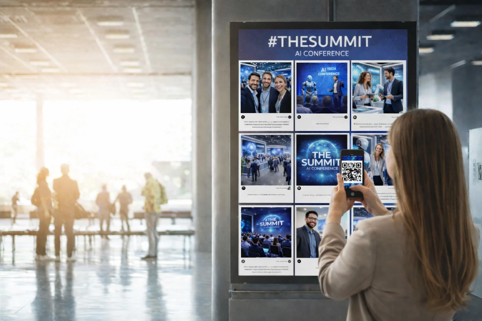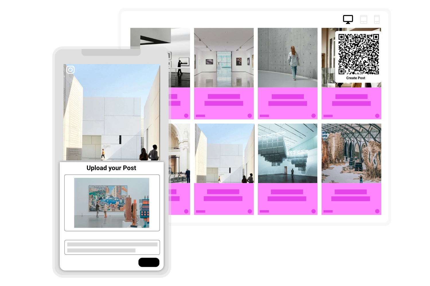 Launch your social wall on on-site screens or embed it into your website. Your audience scans the code, selects a photo or video, and uploads it—no app required. Since users agree to your custom terms of use during upload, you can safely use the collected UGC for your marketing.